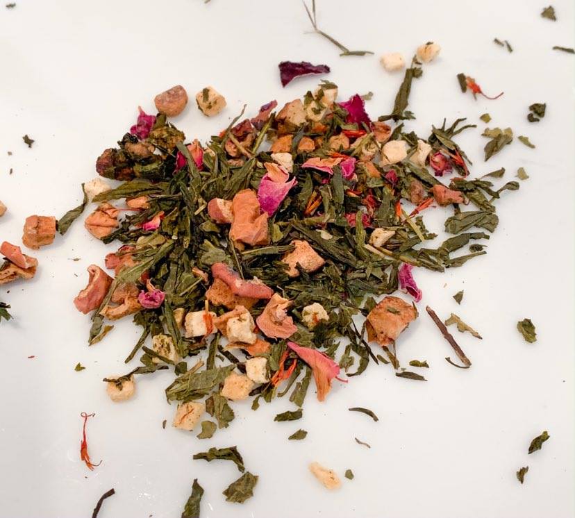 Luxury Ingredients: Green tea, Apple pieces, Cinnamon, Rose + Safflower petals, Natural flavors (Organic Compliant)